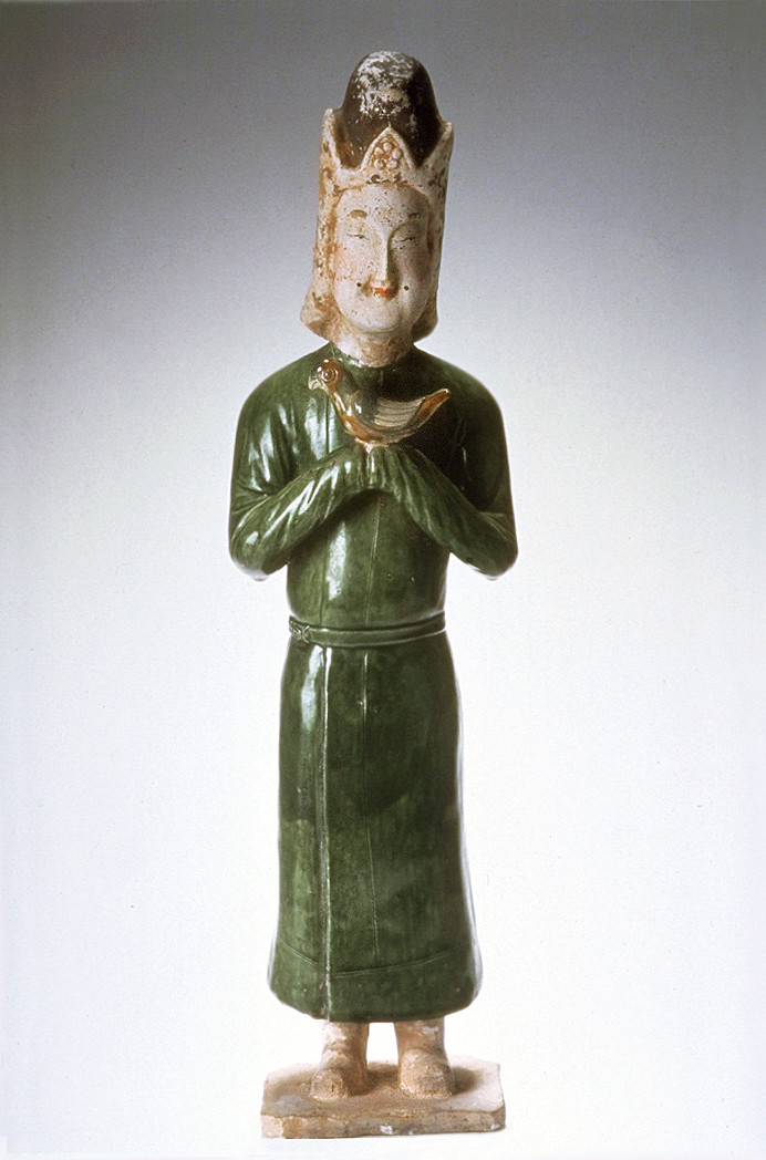 A woman disguised as a man holding a parrot, 618–906
