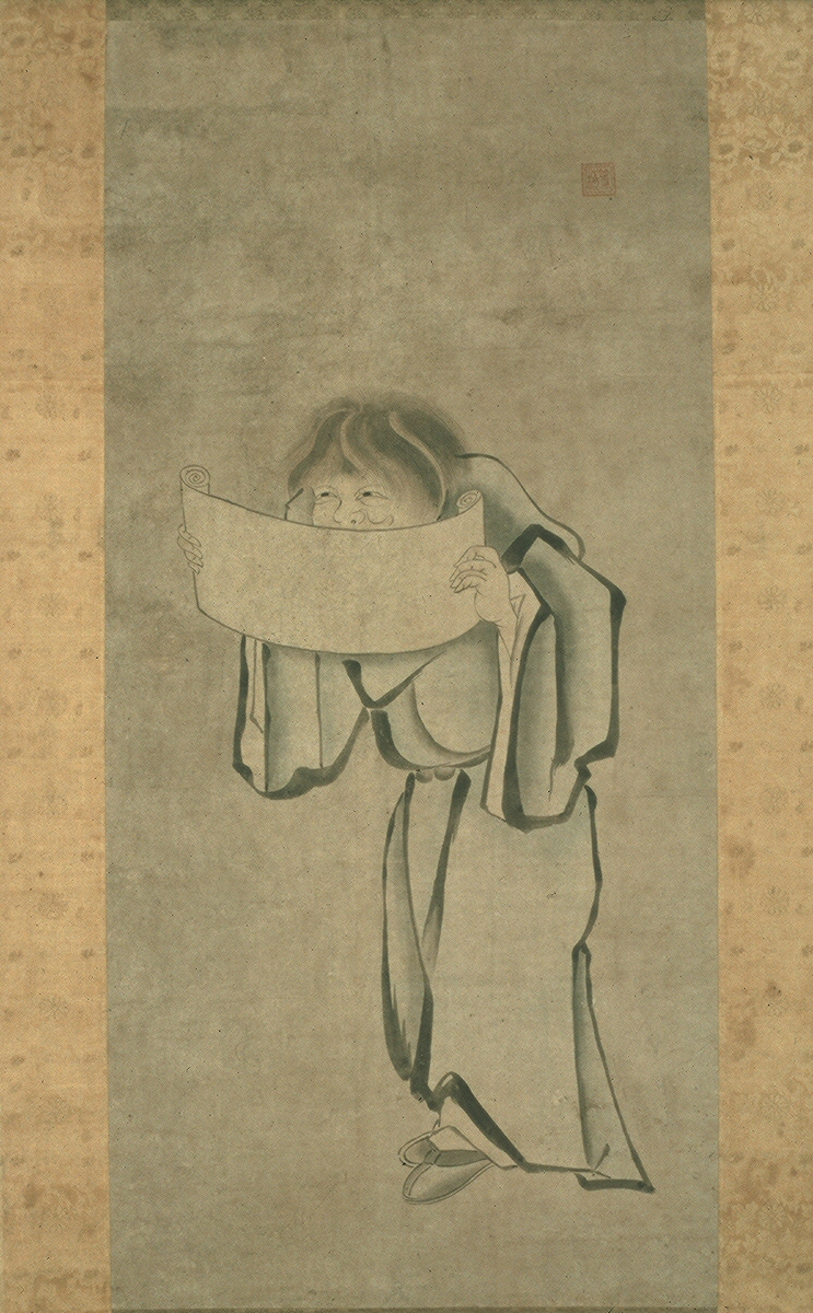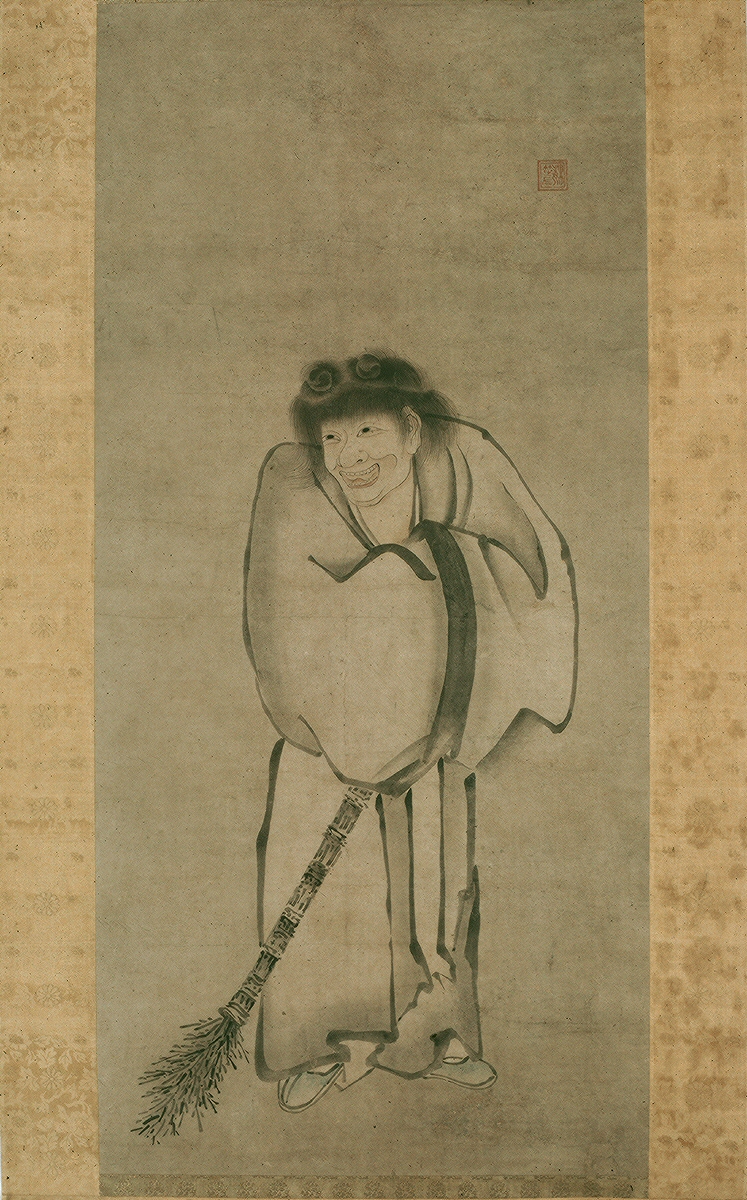 The artist Tobai is believed to have been an ink painter from present-day Fukuoka prefecture who studied with Sesshu (1420-approx. 1506). The brushwork on the garments and broom are in the style of Sesshu. Some scholars have argued that Tobai was instead a painter of the Unkoku school active in the late 1500s or early 1600s. In either case, surviving works by this artist are rare.