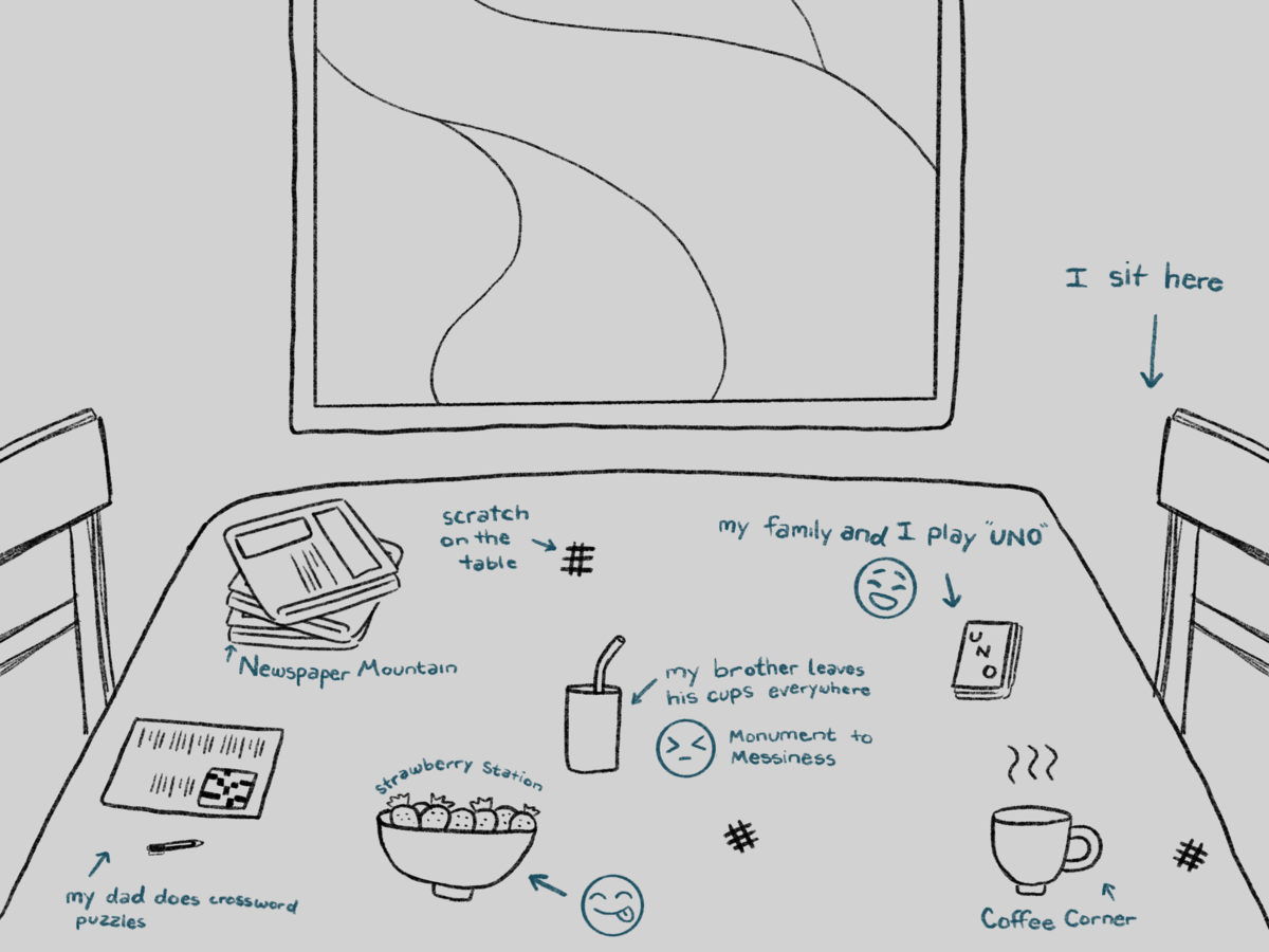 1. Choose a space/place/spot that means a lot to you. It can be a special corner chair, a favorite building, a street you visit often, or an inspiring outdoor space. Draw/ sketch that place on a piece of paper.