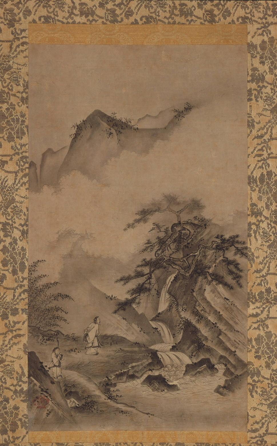 During the Muromachi period (1338–1573), the vogue for Chinese art, especially among the Ashikaga shoguns, who ruled as the military leaders of Japan during this period, led to the development of new architectural environments in which to display collections of tea-related objects. Art, architecture, tea, and temple etiquette melded, to produce a style of tea known as shoin,named after the rooms in which it was served that were modeled on a Chinese scholar’s study. The Ashikaga collection became so vast that a staff of curators was necessary to maintain it (Soami, the painter of image above, was one such curator). The curators were responsible for the care of the objects, the creation of a setting that allowed the beauty ofthe objects to show forth, and the preparation and presentation of tea. At early shoin gatherings, the host did not make tea himself, but sat with the guests and was served tea by the curators. Reflecting the wealth and power of the early Ashikaga shoguns, shoin-style tea emphasized collection, evaluation, and display of Chinese art in its characteristic perfection of form, superlative technique, and flawless surface beauty.