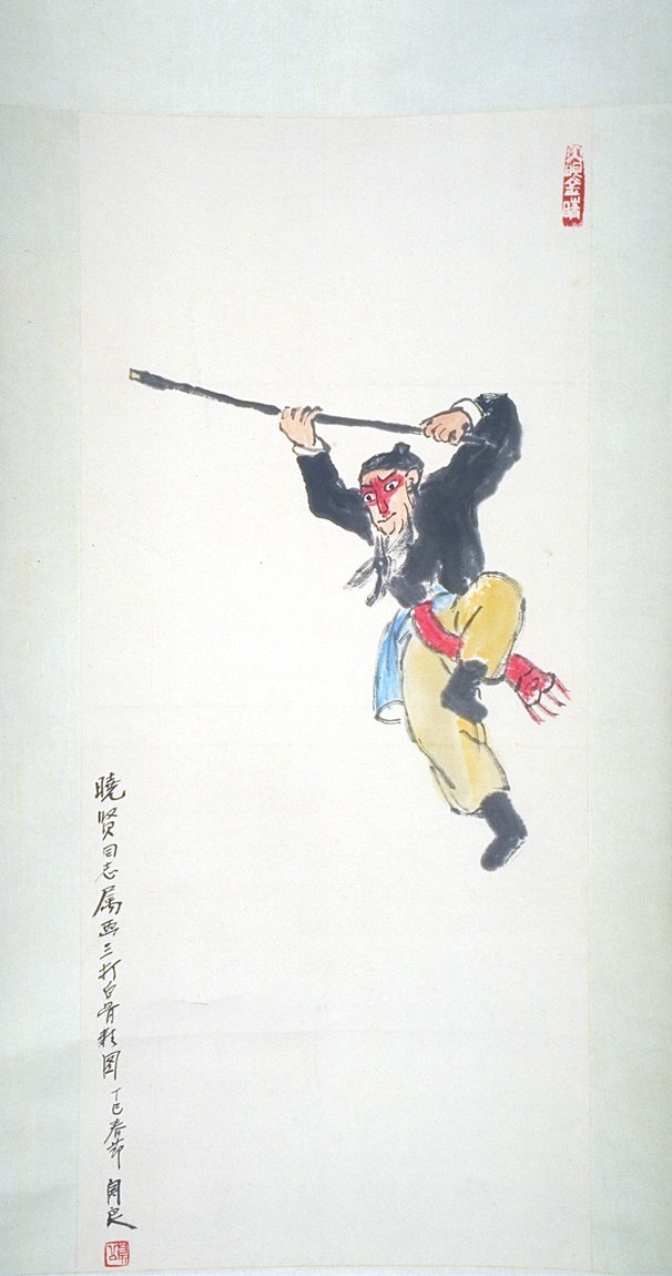 The Monkey King, 1977. By Guan Liang (Chinese, 1900-1986). Hanging Scroll, ink and colors on paper. Gift of the Jack Anderson Collection, 1994.116.