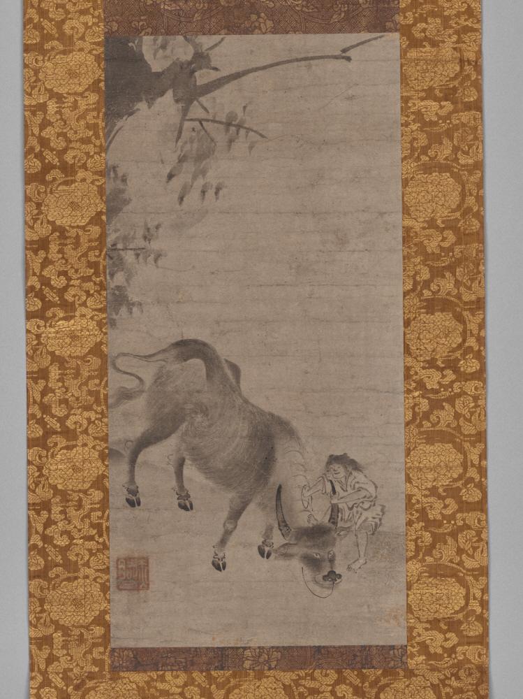 - Ask the class to describe what they see in the painting. Knowing how important discipline and courage were to samurai warriors, explain the lesson that the painting is teaching. Start by answering the following questions: Who or what does the boy represent? Who or what does the ox represent? (an untamed mind)
